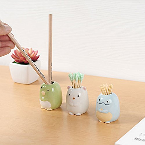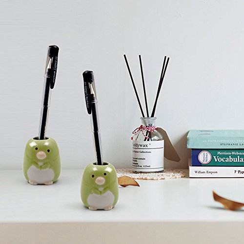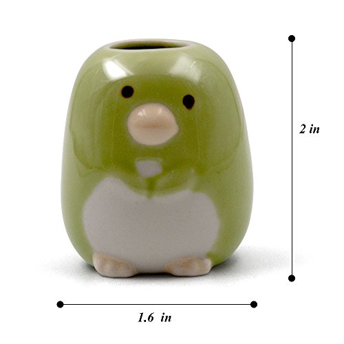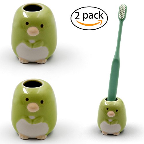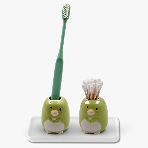 Airmoon Set of 2 Porcelain Toothbrush Holder Stand, Toothpick Case, Pen Stand Box, Penguin (Green)