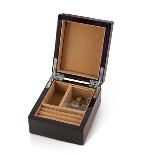 -. Feature : Tune: 18 note movement (please choose above option for available song titles) / 1 open compartment + large ring roll / Hi gloss Macassar finish / Khaki velvet interior / Silver hardware throughout
