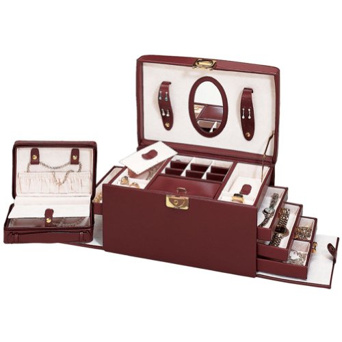 Budd Leather Jewel Box with Handle, 4-Drawer and Travel Box, Black