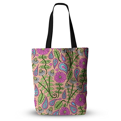 KESS InHouse Everything Tote Bag 13 Inch x 13 Inch Sarah Oelerich Peach Floral Paisley Pink Green