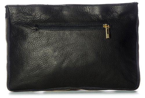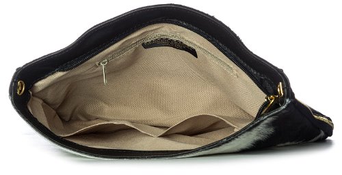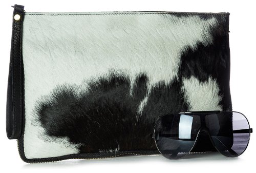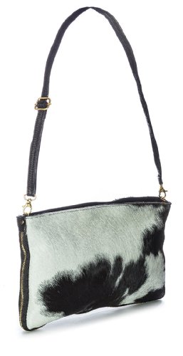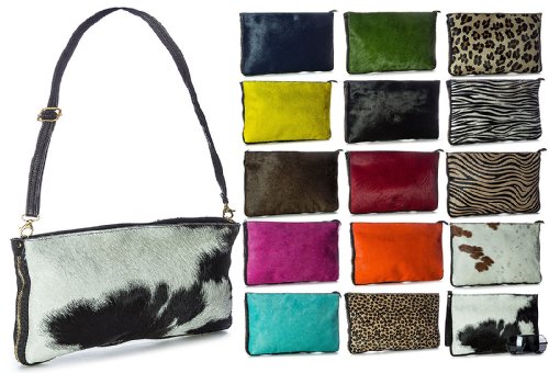 Big Handbag Shop Large Genuine Leather with Calf Fur Zip Clutch Shoulder Bag