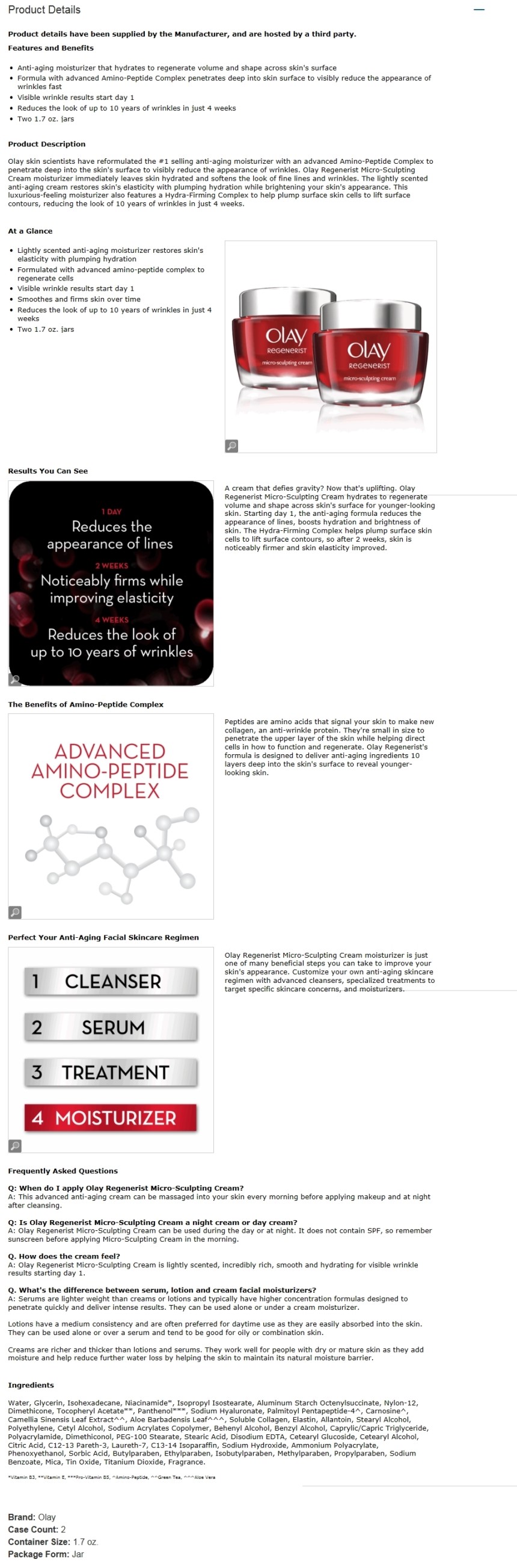 Olay Regenerist Micro-Sculpting Cream 1.7 oz., 2-pack