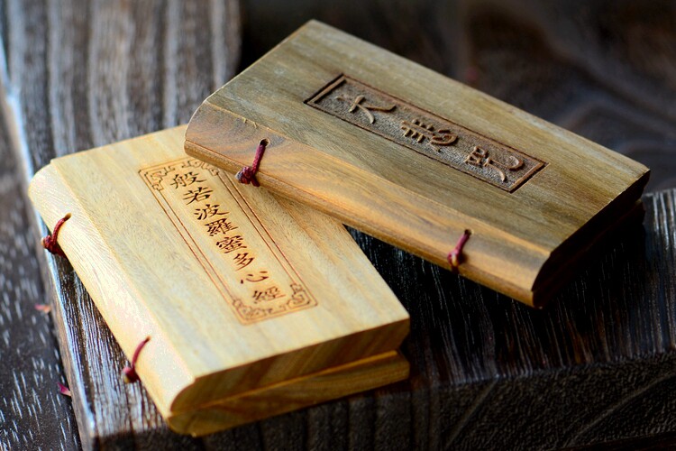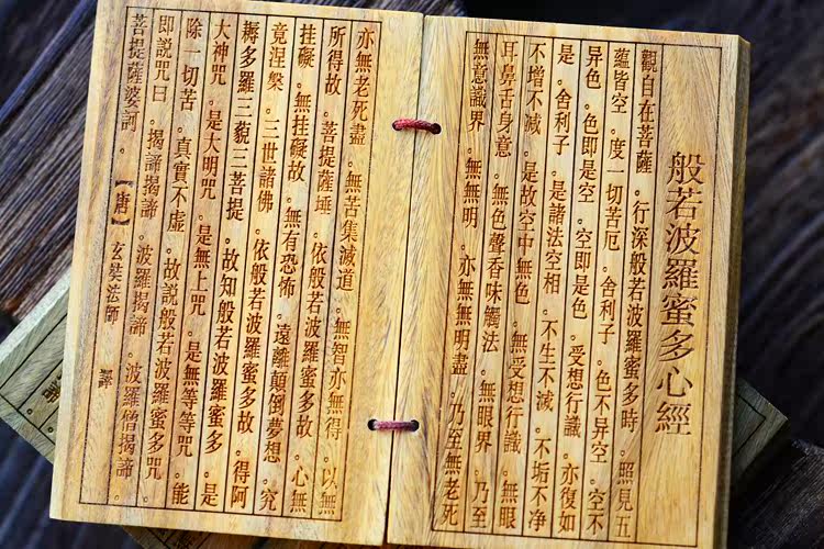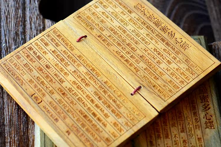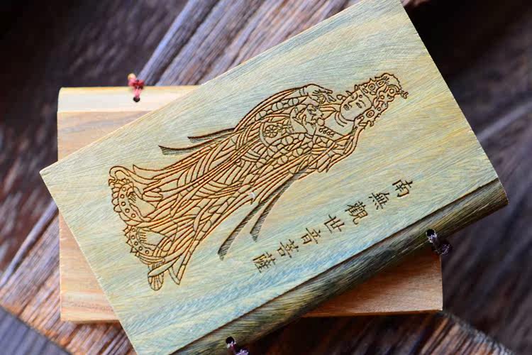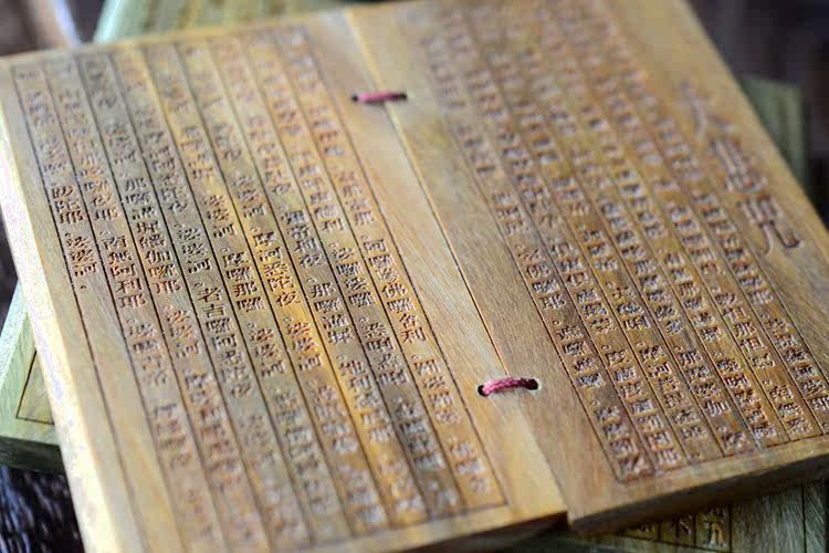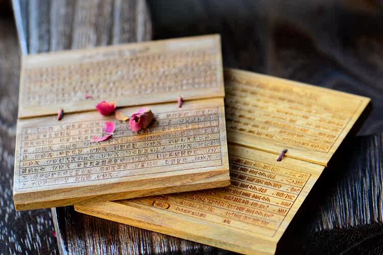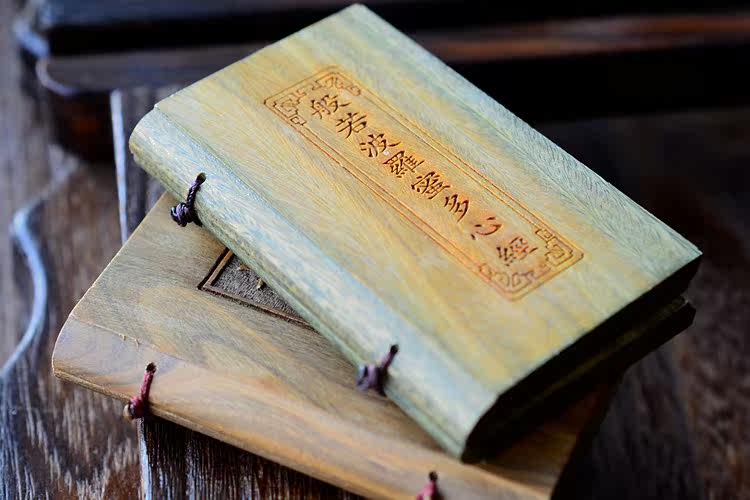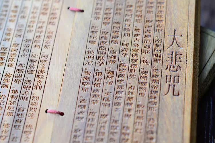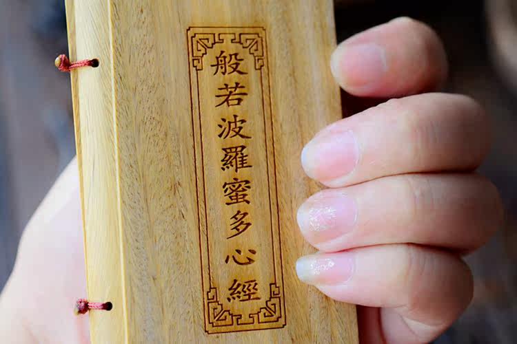 天然绿檀原木雕刻的佛经随身小本。分为心经和大悲咒两款。