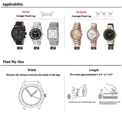 Breite: geeignet fur traditionelle und Smart Uhren mit 18mm, 20mm oder 22mm Kabelschuhe. Enthalten ist ein Paar von neuen Fruhling Bar mit hohe Qualitat. Bitte messen Sie vor der Bestellung Ihr Watch Lug Breite oder Breite des aktuellen Band an Anschluss Punkt. Es ist einfach zu anbringen und entfernen Fruhjahr Bars mit einem Taschenmesser.