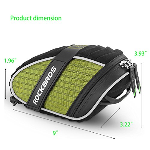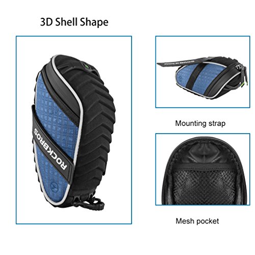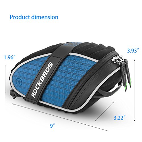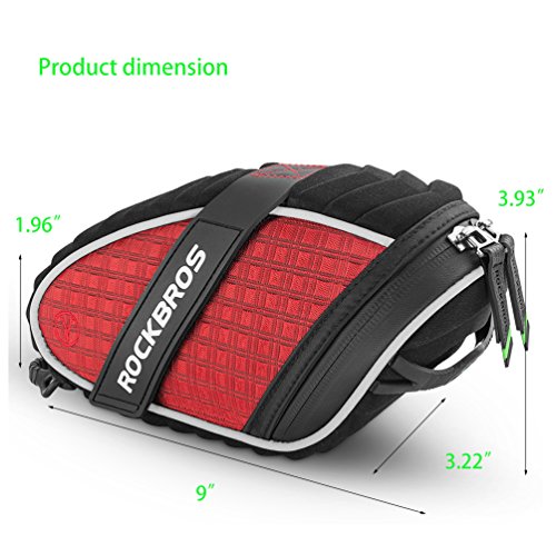 Brand: Rockbros. Material: High quality polyester composite fabric. Product dimension: W 3.22 * L 9 * H 3.93 in ( 8 * 23 * 10 cm). Weight: 135 grams / 0.3 pounds. Shape: 3D shell wedge.