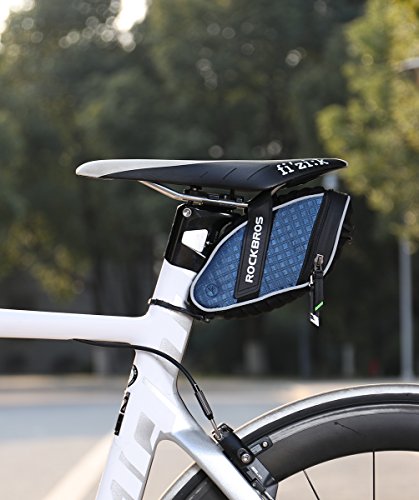Repels rain well with waterproof zipper, but cannot bear soaking in water for a long time. 3D shell design, more shockproof to protect your values inside the bag when fall out. High visibility reflective strips around the bag ensure safety of night cycling. With a clip to hang a bike rear light off the back, very convenient and space-saving. Installation can be finished very quickly with 2 velcro straps and a rubber buckle. It will attach the bike seat post securely.