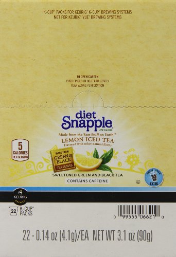 Your favorite Snapple beverage available in its diet form. Now available in a K-Cup to be brewed over ice. Life handed us lemons, we picked out the best ones and blended their lemon flavor with our green and black teas to create our famous Snapple diet lemon tea.Feature