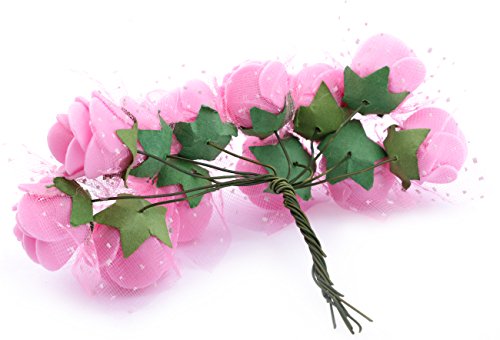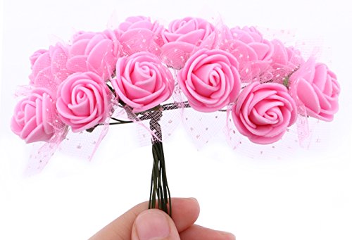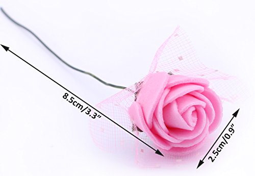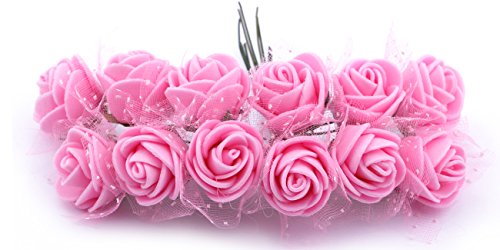 DriewWedding 720-Piece Mini Artificial Realistic Foam Flower Petals Real Looking Rose with Stem Chiffon for Wedding Bouquets Party Baby Shower Home Decoration (φ2.5cm; 3.3")(Pink)