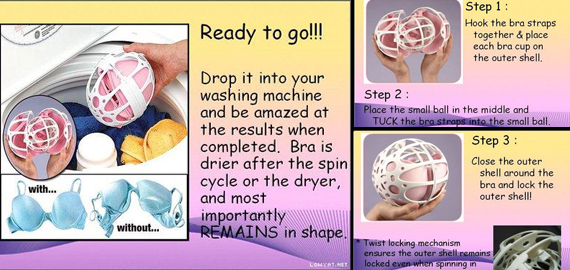 • "How many times have the cold unfeeling washing machine damaged those precious lingerie that you have newly purchased? Stop procrastinating and resolve this bugging frustration once and for all, get a Bubble Bra Washer that works to retain your delicates in its original comfort and supportive shapes!! "