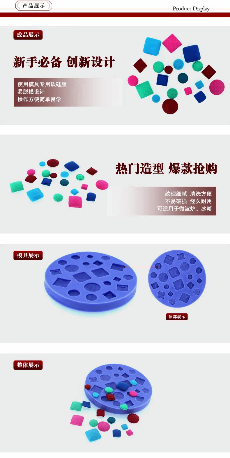 ● 纹理清晰,款式多样,柔软易脱模;