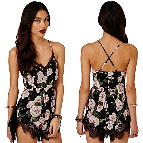 Franterd Women Floral Lace Chiffon Bodycon Jumpsuit Party Romper Dress