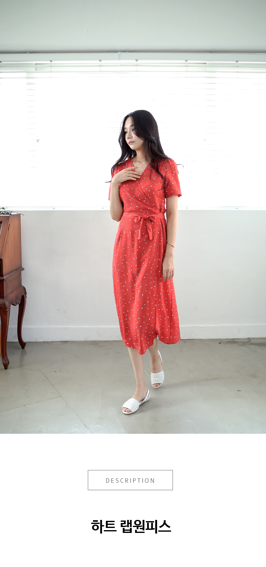 특유의 흐르는 핏이 랩 원피스와 잘 어우러지며