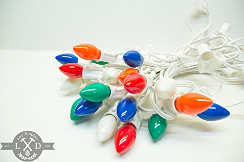 - 7 watt bulbs and 130 Volt traditional incandescent ceramic C7 (E12 socket) bulbs and rated at 3,000 hrs. Replacement Bulbs. No Strings Included.