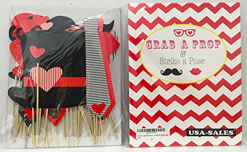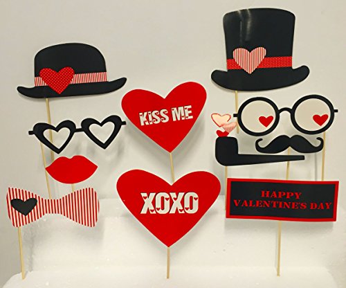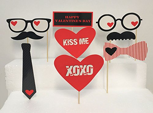 Valentines Day Photo Booth Props Wedding Photo Booth ATTACHED, NO DIY REQUIRED Wedding Party Decorations Photo Booth Mustaches Lips Hearts Attached to the Stick No DIY Required Only By Ussales Seller