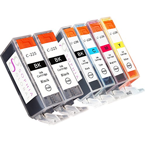 Sophia Global Compatible Ink Cartridge Replacement Set for Canon PGI-225 CLI-226 (Pack of 6: 2 PGI-225 Large Black, 1 CLI-226 Small Black, 1 Cyan, 1 Magenta, 1 Yellow)