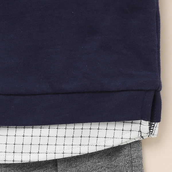 체크셔츠를 레이어드한 느낌을 주어 시크한 이미지를 더해줍니다.