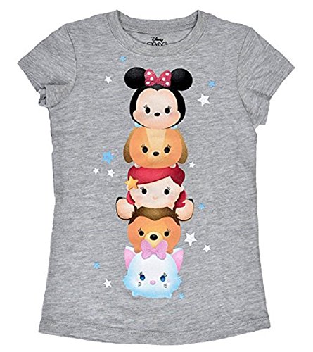 Disney Tsum Tsum Totem Pole Youth Girls Fashion Top T-Shirt, Gray (X-Small (4/5))