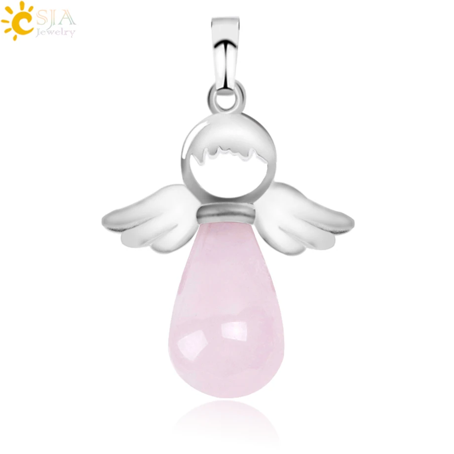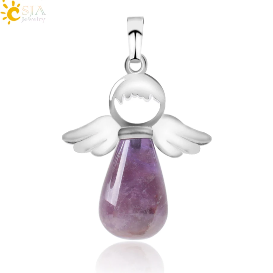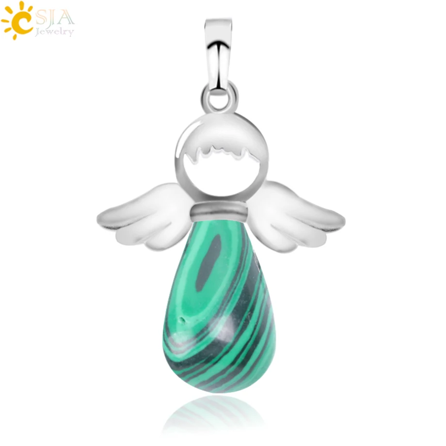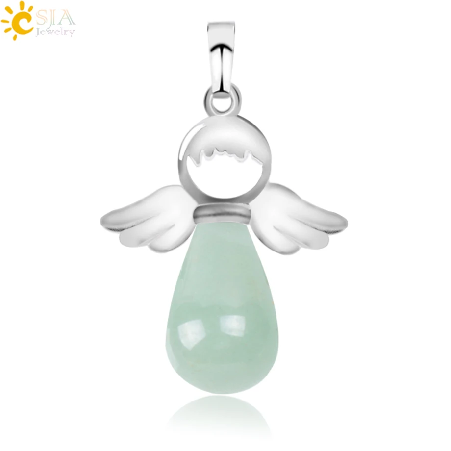 Pendant Feature:Silver-color Angel Wings + Water Drop + Natural Gem Stone + Multicolor