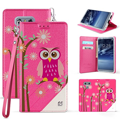 -. Title : LG G6 Case PU Leather TPU 2 Tone Card Slot Magnetic Close Strap Kickstand Daisy Owl