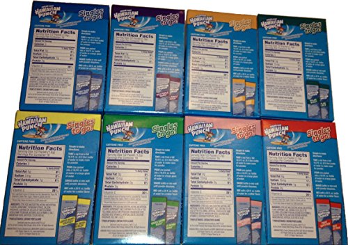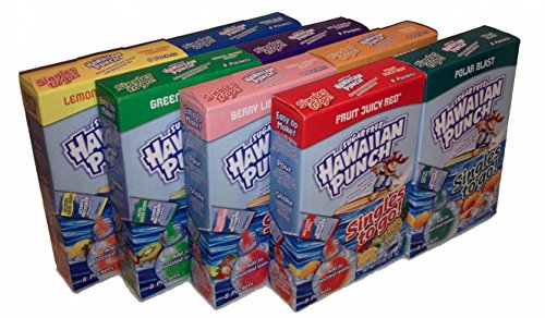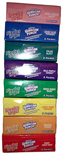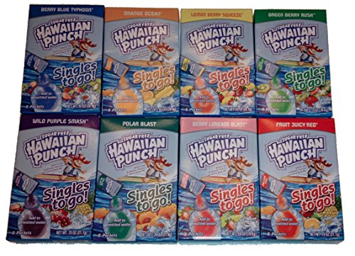 Easy to Make, add to 16.9oz bottle of Water. Shake until dissolves and drink. Take along refreshing taste anywhere you go. 8 Boxes of Variety Flavor (64 singles total). 1 box of each: Berry Blue Typhoon, Orange Ocean, Lemon Berry Squeeze, Green Berry Rush, Wild Purple Smash, Polar Blast, Fruit Juicy Red & Berry Limeade BlastFeature