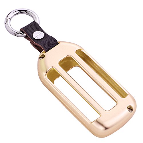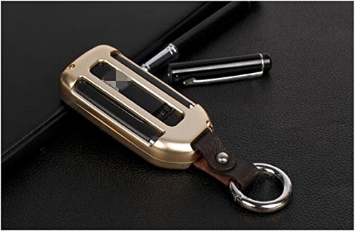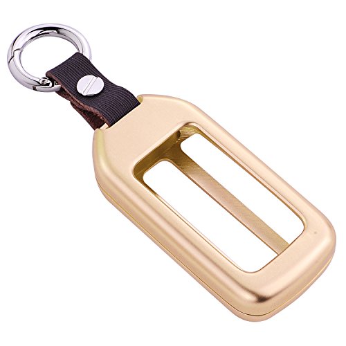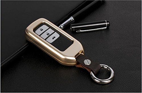 [M.JVisun] Car Remote Keyless Entry Key Case Cover Fob Skin Fits for Honda 2 / 3 / 4 Buttons Smart Key , Premium Aircraft Aluminum Metal Protective Shell Genuine Leather With Key Chain - Gold