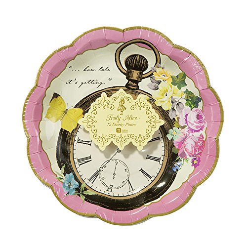 Studio : Talking Tables Publisher : Talking Tables Binding : Kitchen Product Description Serve up your very own mad hatters tea party with these beautifully illustrated Truly Alice dainty plates. Each pack contains 12 paper plates and come in 3 colorful designs, including a pocket watch design with pink floral trim, March hare with cream floral trim, and a blue floral trim with Alice illustration. In homage to Lewis Carroll's classic novel this year, the Truly Alice range from Talking Tables is full of quirky goodies with that tea party twist that Alice in Wonderland is so well known for. The perfect theme for summer weddings, garden and tea parties, thanks to its whimsical styling and English references. 0