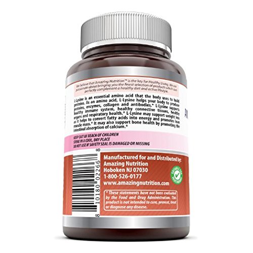 KEEP SUPPLEMENTATION SIMPLE Whether You're Using Lysine For Cold Sores, For Immune Support, To Promote Healthy Bones Or For Another Purpose, Amazing Nutrition Makes It Easy To Benefit From The Amino Acid L- Lysine. Our L-Lysine 500mg Capsules Provide The Most Recommended Dosage By Taking Just 1 To 2 Capsules Per Day!