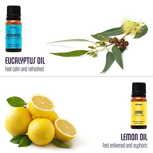 Natrogix Bliss Essential Oils - Top 9 Therapeutic Grade 100% Pure Essential Oil Set (Tea Tree, Lavender, Eucalyptus, Frankincense, Lemongrass, Lemon, Rosemary, Orange, Peppermint) w/ Free E-Book