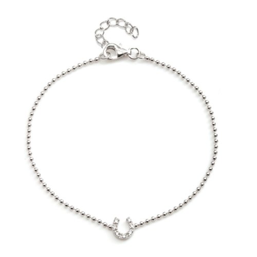 -. Title : Rhodium Plate Silver White CZ Mini Horse Shoe Anklets-9.5"