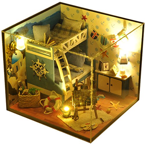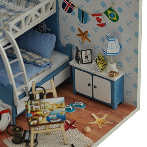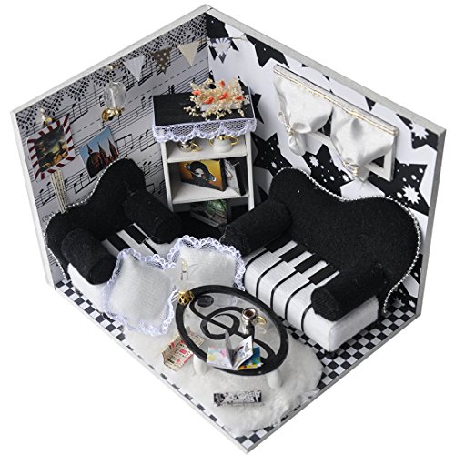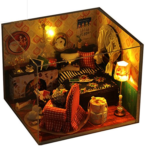 -. Feature : Doll house with all furniture and accessories,cute room,perfect decoration for home or gift for your kid and friends / Product include detailed instructions. You can prepare a set of auxiliary production tools, such as scissors, tweezers, ruler / Can exercise your hand ability and develop your talent, cultivate your imagination and patience / Wood floor, fabric curtains,paper book,battery power(battery not included),size:4.7*5.5*5.9 inch / Please note: This is DIY House, it requires assembly and finish by yourself,so enjoy the process