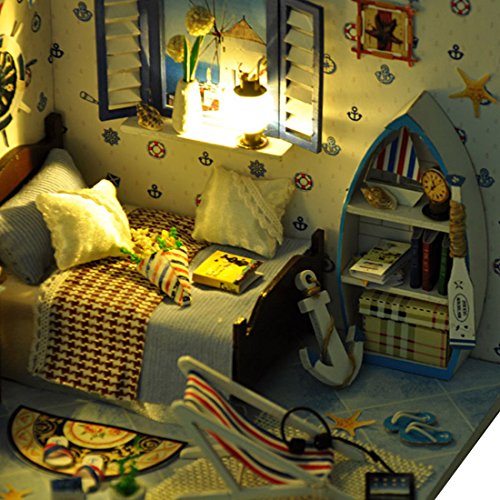 -. Title : A-SZCXTOP DIY Wood Dollhouse Miniature House Room Model with Furniture Kit and LED Light