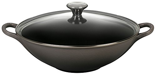 A staple of East Asian cuisine for centuries, woks are perfect for not only stir-frying, but also braising, steaming and stewing. This beautiful wok pairs the traditional curved sides with a flat base that ensures solid contact with any stovetop heat source. A tempered-glass lid locks in moisture while steaming and makes it easy to keep an eye on cooking foods. Constructed from Le creuset's legendary enameled cast iron, this wok is as beautiful to look at as it is to cook with.Feature