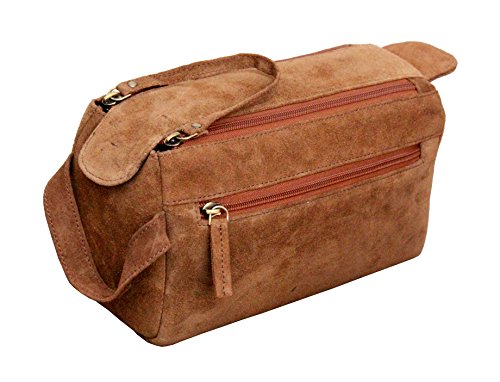 IndiArtVilla Real Leather Toiletry Bag for Travel ~ Gift for Men Women ~ Hanging Zippered Dopp Kit Makeup Bathroom Cosmetic Pouch Case