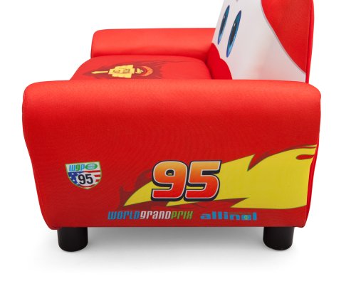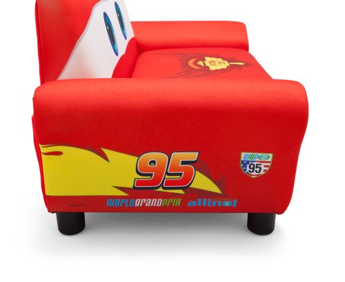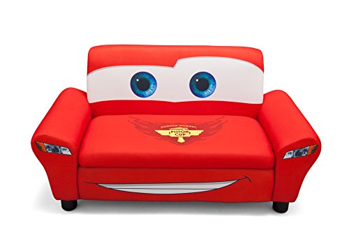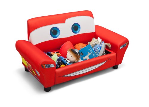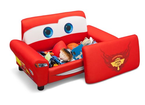 Studio : Delta Enterprise Publisher : Delta Enterprise Binding : Toy Product Description Guaranteed to get motors running, this Disney/Pixar Cars Upholstered Sofa with Storage from Delta Children was designed to look like Lightning McQueen. It features a sturdy wood frame with cozy foam padding, plus a spacious toy box under the seat. The Disney/Pixar Cars Upholstered Sofa with Storage is the perfect rest stop for any Cars fan. About Cars: The ultimate speed racer, Lightning McQueen, loves going faster than fast! A four-time Piston Cup winner and World Grand Prix favorite, McQueen's cool and confident attitude paired with a supercharged V-8 engine, free-flowing dual exhaust and speeds that reach 200 MPH makes him the wheel deal. Off the track, he spends most of his time in Radiator Springs-a small town along Route 66-with his best bud, Tow Mater and girlfriend, Sally Carrera. 0