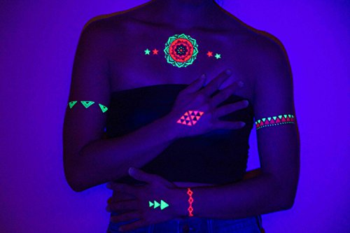 Henna inspired temporary tattoos that resemble real jewelry on the skin. Perfect for the beach, pool, music festivals, bachelorette parties or a night on the town. Great gift for a sister, daughter or bachelorette party! FEATURES: ? Enjoyed by women and men alike on the face, arms, hands, feet or body. ? CHIC, BEAUTIFUL, INTRICATE, METALLIC DESIGNS. Created exclusively for TribeTatsTM in gold, silver, rose gold and black for a sexy look. ? NO SCISSORS REQUIRED: fold-and-tear sheets for easy metallic tatoo separation! ? HIGHEST QUALITY METALLIC TATTOOS AVAILABLE: Premium, long lasting adhesive lasts up to an entire week. Waterproof and sweatproof; non-toxic and safe to use. APPLIES IN A FLASH WITH WATER: - Fold and tear along perforation lines to separate desired tattoo, and remove the plastic protective film.