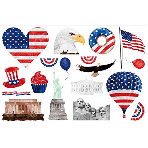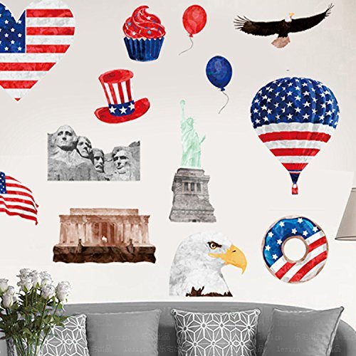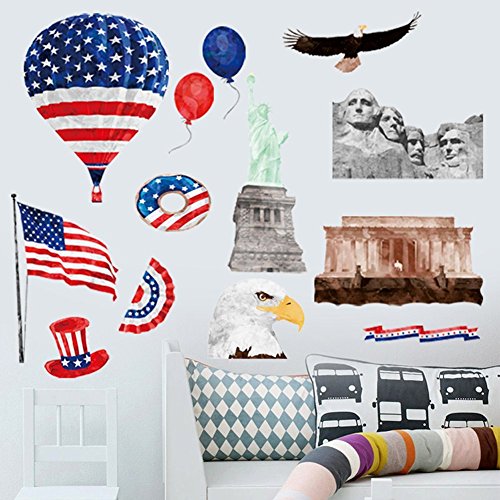 Amaonm Removable PVC American Flag Hot Air Balloon The Bald Eagle Wall Decal US Flag Building Statue of Liberty Wall Stickers Decor for Kids Babys Girls Boys Nursery Bedroom Living Room