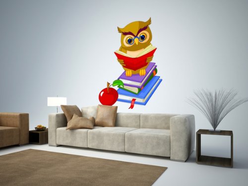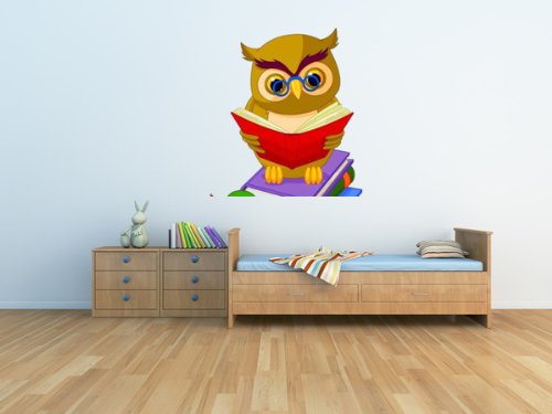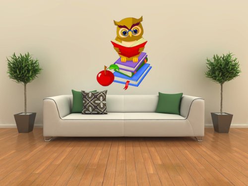 - Title : Animal Wall Decals Wise Owl Sitting on Pile Book - 24 inches x 18 inches - Peel and Stick Removable Graphic
