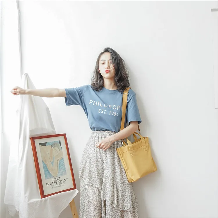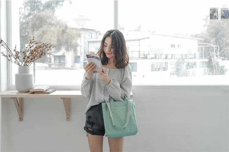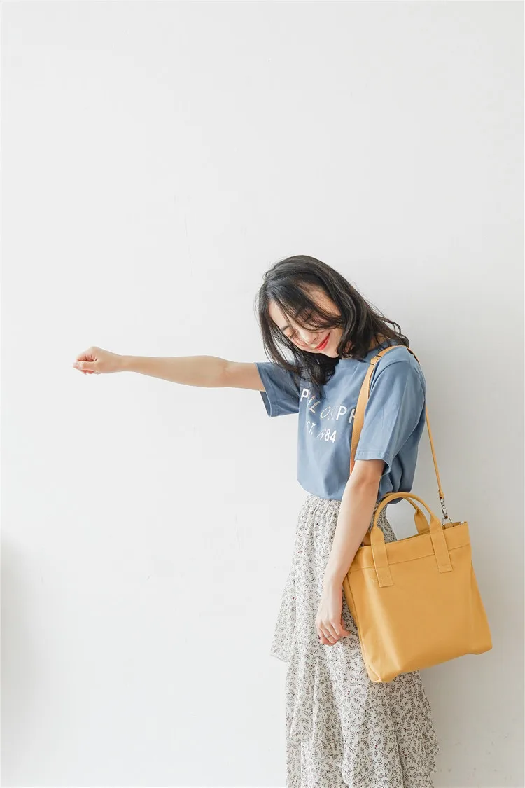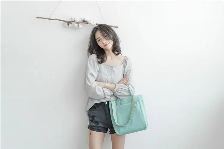 Japan Women Canvas Shoulder Bag Plain Co:Cotton Female Design Everyday Bag