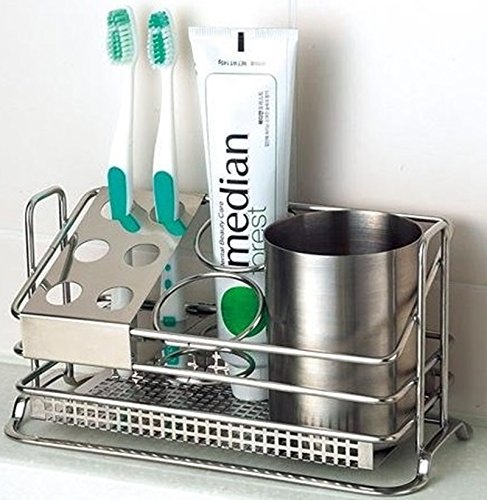 Stainless Steel Toothbrush Holder Stands Toothpaste Cup Storage Bathroom by STAFIX