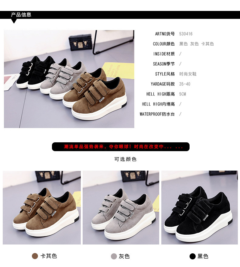 魔术贴松糕鞋女厚底秋季新款韩版百搭圆头休闲跑步运动鞋女鞋