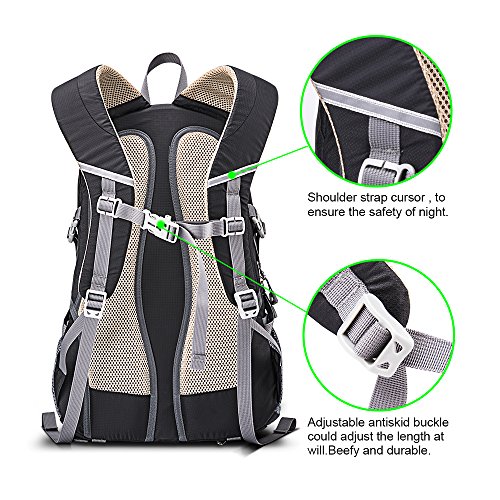 -. Feature : 【DURABLE, LIGHTWEIGHT】Built from high quality tear resistant nylon for increased toughness with the lightest weight possible. The materials, stitching and zippers are top quality to ensure it is durable and long lasting. / 【COMFORTABLE】Breathable mesh shoulder straps with plentiful sponge padding help relieve the stress from your shoulder. The back is also padded, so there is cushioning between the hiking daypack and your back. The chest strap with a durable buckle help you lock your backpack in place securely. The shoulder strap cursor can ensure your safety during night. / 【WATERPROOF RAIN COVER】Comes with a rain cover at the bottom to protect the hiking daypack from raining or water. No need to worry it may wet your phone, iPad, camera or valuable items inside the backpack. / 【COMPACT】The compression straps at the two sides are adjustable, so you can tighten the lightweight backpack or adjust it to bigger for holding more items. Perfect for daily use or occasional travel. A great gift for everyone, and a must have for every trip. / 【MULTI COMPARTMENTS】Includes 1 main zipped compartment, 1 zipped front pocket, 1 zipped back pocket and 2 side pockets. The main compartment provides 20L room to hold everything you need. One zipped front pocket is suitable for holding small accessories for easy access. One zipped back pocket is good for holding valuable items( purse, phone or tickets etc.) Two side pockets are good for holding water bottles and umbrellas. It keeps everything organized and you can find everything in seconds.