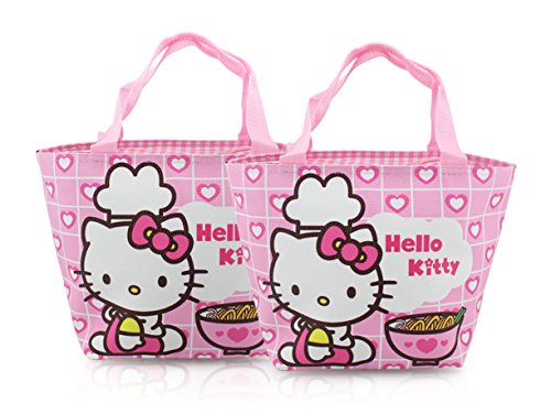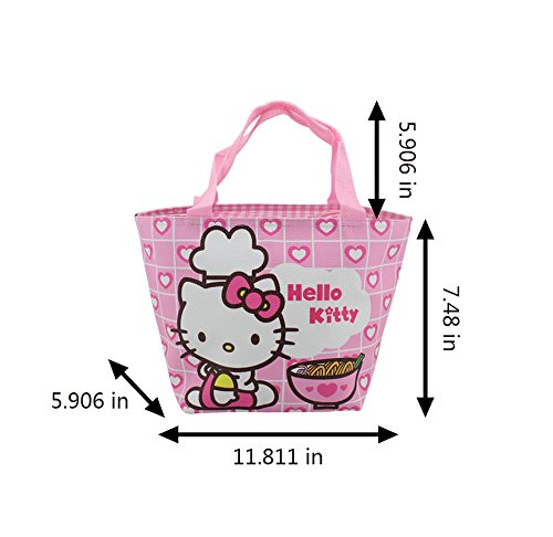 Pink Hello Kitty Zippered Lunch Tote Bag with Carry Handles (Set of 2 - EZ-Carry totes). Set of 2 - EZ-Carry totes. Perfect for lunch box bag, diaper bag, travel tote, reusable shopping tote, etc. Dimension: (Base) 11.81 in x 5.91 in; (Height w/o Handle) 7.48 in; (Handle Height) 5.91 in. Finex is a registered Trademark. Sold exclusively by Finex Authorized Distributor.Feature