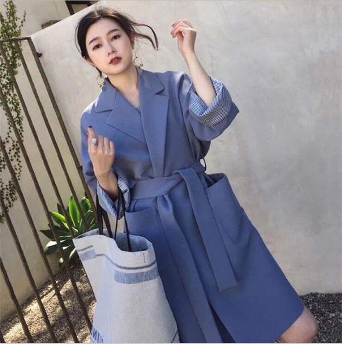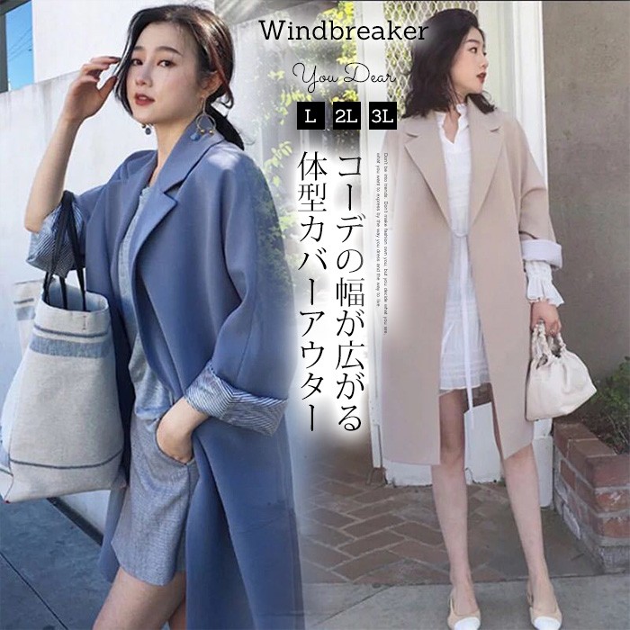 ■キーワード:トレンチコート レディース スプリングコーデ ロング丈 ロング丈コート ミディアム丈 アウター 羽織り ジャケット マント カジュアル ゆったり 体型カバー 大きいサイズ ベルト付き 秋 無地 折り襟 上品 おしゃれ 大人 20代 30代 40代 通勤 OL デーリー 二次会 食事会 同窓会★素材:ポリエステル★伸縮性:なし ★厚さ:普通★カラー:ブルー、ベージュ(写真参考) ※お客様ご使用のPC環境により商品画像のカラーが多少異なる場合があります。仕入時期により多少デザインなど異なる場合があります。ご了承ください。★サイズ(CM):L: バスト114 袖丈64 着丈96XL: バスト118 袖丈65 着丈972XL:バスト122 袖丈66 着丈98※サイズは人の手によって測っているため、1-3cmの誤差がある場合がございます。予めご了承下さいませ。