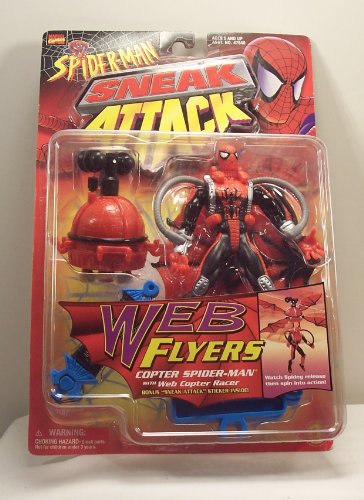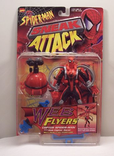 -. Binding : Toy -. Brand : Toybiz -. EAN : 0035112476429 -. Feature : Includes: COPTER SPIDER-MAN with Web Copter Flyer Plus Bonus "Sneak Attack" Sticker / Figure measured approximately 5 inch tall / Produced in year 1997 / For age 5 and up -. IsAdultProduct : 0 -. Label : ToyBiz -. Manufacturer : ToyBiz -. Model : 47642 -. MPN : na -. PackageQuantity : 1 -. PartNumber : na -. ProductGroup : Toy -. ProductTypeName : TOYS_AND_GAMES -. Publisher : ToyBiz -. Studio : ToyBiz -. Title : Marvel Comics Year 1997 Spider-Man Sneak Attack Web Flyers 5 Inch Tall Action Figure Set - COPTER SPIDER-MAN with Web Copter Flyer Plus Bonus "Sneak Attack" Sticker -. UPC : 035112476429