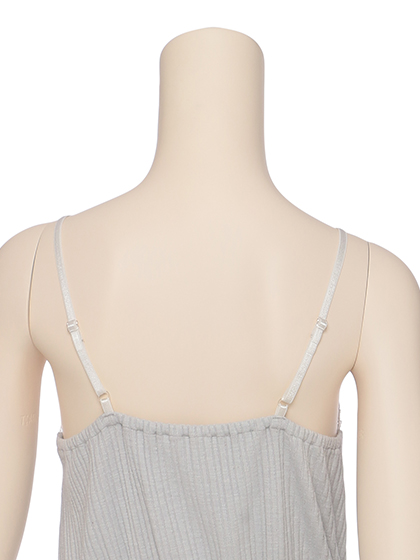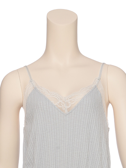 ネックラインを繊細なストレッチレースが彩り、バストの谷間が少しだけ覗くデザイン。