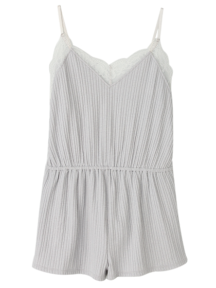 肌触りの良いテレコ生地でリラックス感が漂うロンパース。