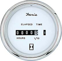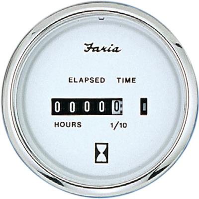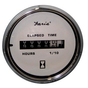 Studio : Faria Publisher : Faria Binding : Misc. Product Description Faria Chesapeake White SS Marine Instruments Hourmeter Style To 10,000 Hrs 12/32 VDC. Perimeter Lighted White Dial With Stylish Blue And Black Graphics, Polished Ss Bezel, Contoured Black Pointer And Domed Glass Lens.