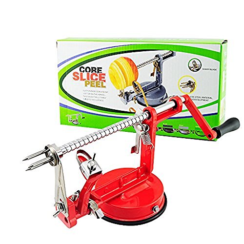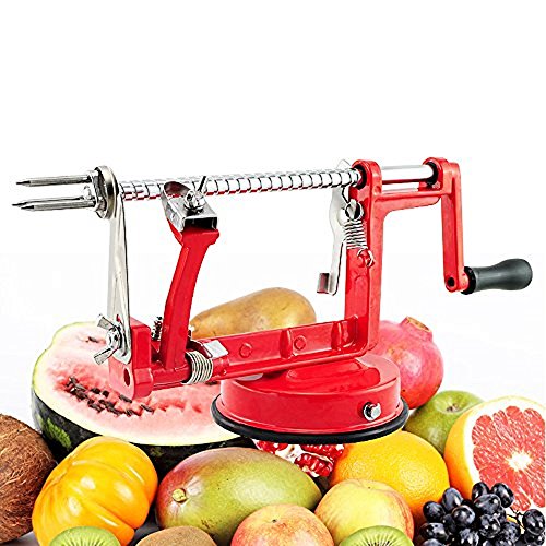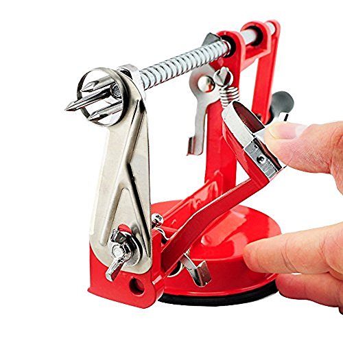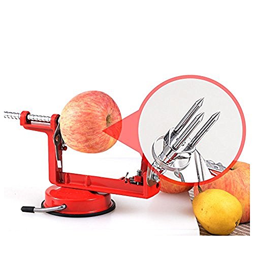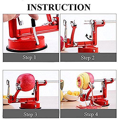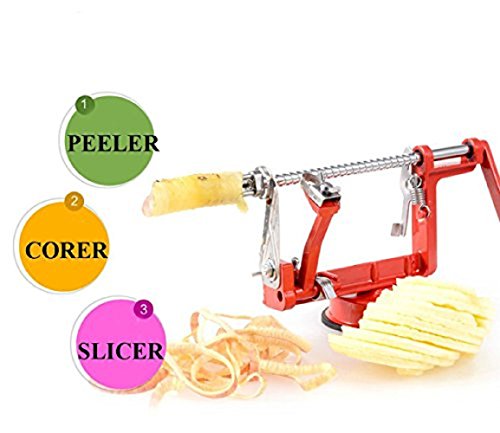 Enshey 3 in 1 Apple Peeler - Corer - Slicer Machine Stainless Steel Apple Slinky Potato Peeler Fruit Cutter Slicer Apple Peeling Machine Potatoes and Pears Spiral Slicer with Vacuum Base, Red