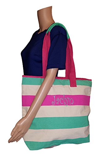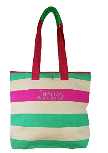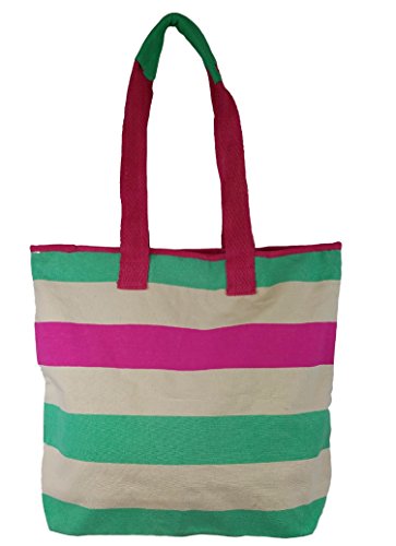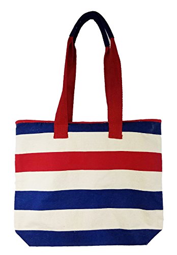 -. Brand : JGR -. Department : womens -. Feature : 17-inches wide + 16-inches tall + 4-inch bottom gusset / Natural canvas tote bag with Stripes / Zip top closure keeps - Inside zipper pocket for easy access to small essentials / Great for the beach or gifts...bride to be gift, bridesmaid gifts, baby shower gifts, and other milestone moments / Buy it Blank or Personalized! -. ProductGroup : Apparel -. ProductTypeName : LAGE -. Title : Zipper Top Eco Friendly Stripe Beach Tote Bag