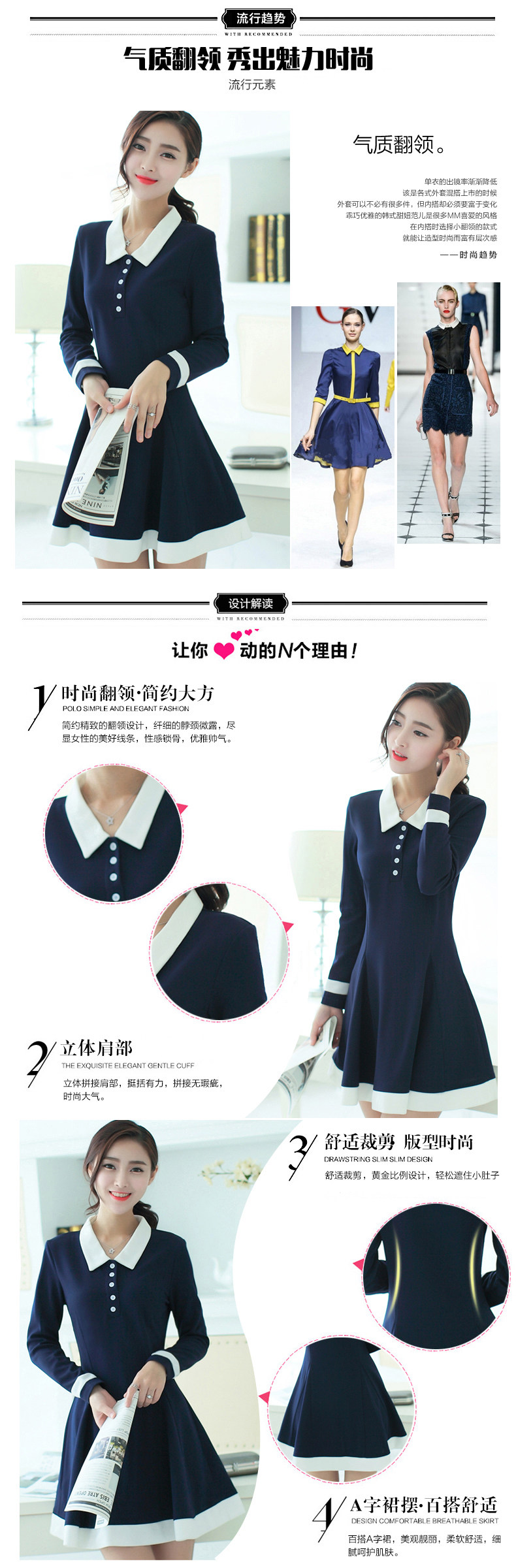 Long Sleeves Lady Polo Neck High Waist Midi Dress